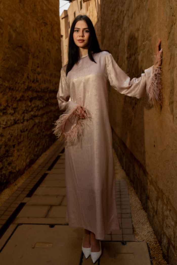 Ənlik Pıçıltı Abaya ilə yumşaq zərifliyi pıçıldayın. Yumşaq ənlik tonunda premium İndoneziya likrasından hazırlanmış bu kəpənəklərlə kəsilmiş abaya zərif şəkildə pərdələnir, maye və səysiz hərəkət təmin edir. Qollardakı incə xəz vurğuları ümumi dizayna müasir və qadına xas toxunuş əlavə edərək zərif tekstura kontrastını təqdim edir.